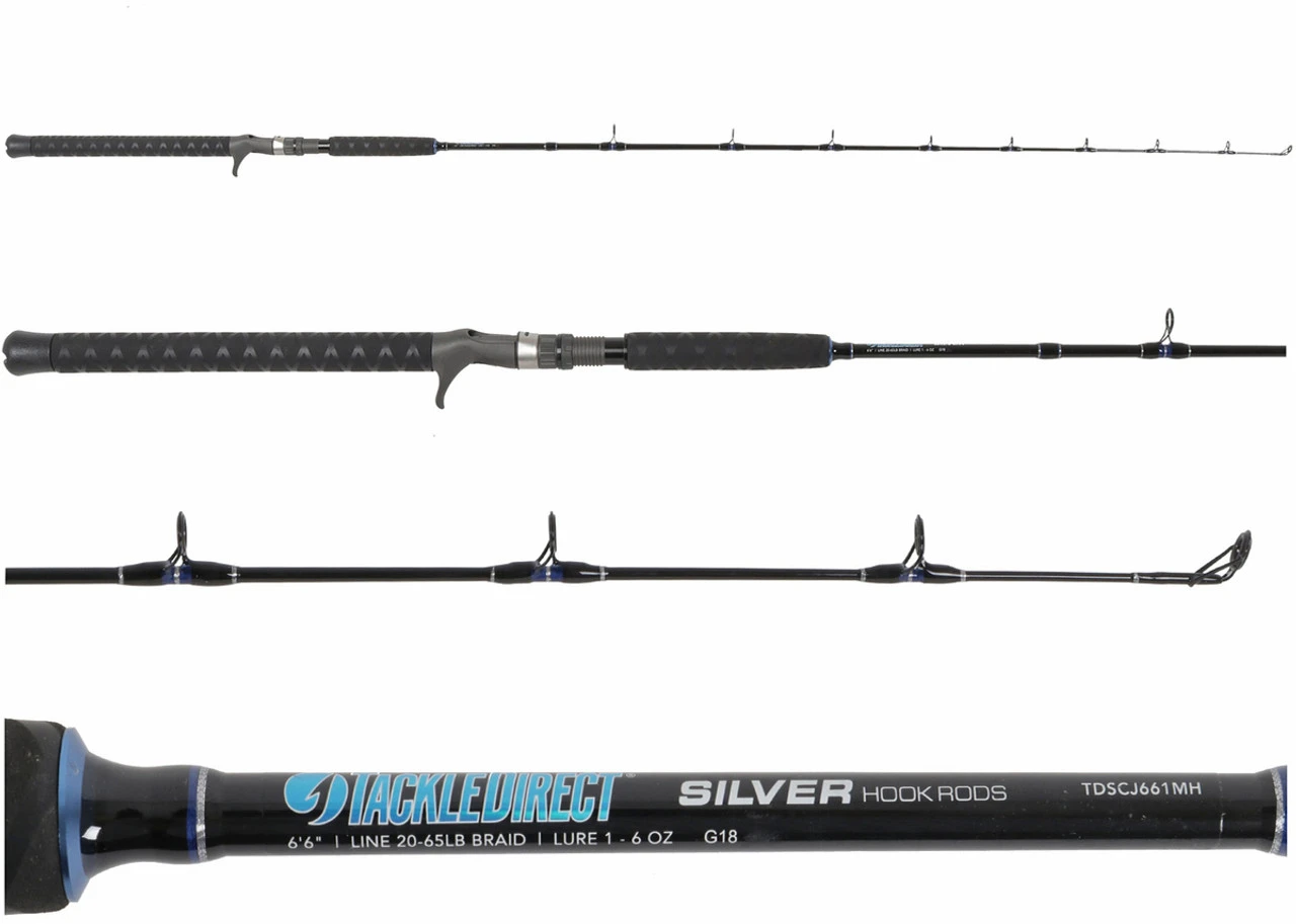 The TackleDirect Silver Hook Series Conventional Jigging Rod is a high performance TackleDirect rod. It’s the result of stringent “on the water” design and testing by some of the finest sport anglers around the world. TackleDirect Silver Series rods were created to satisfy both the professional and weekend angler.